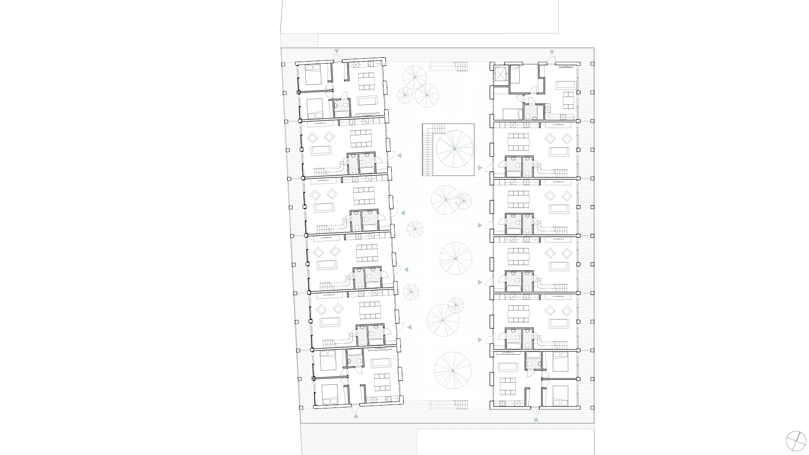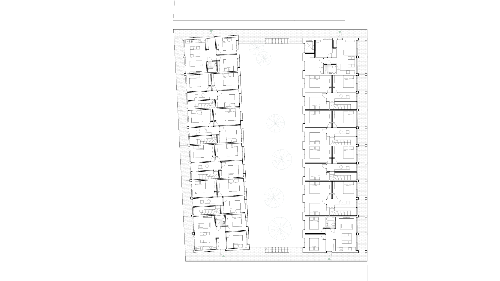 We want to force the scale down to harmonize with that of central Malmö and define Posthusplatsen. The buildings should clearly define the street, the dwelling and the courtyard to make it a part of the urban fabric.