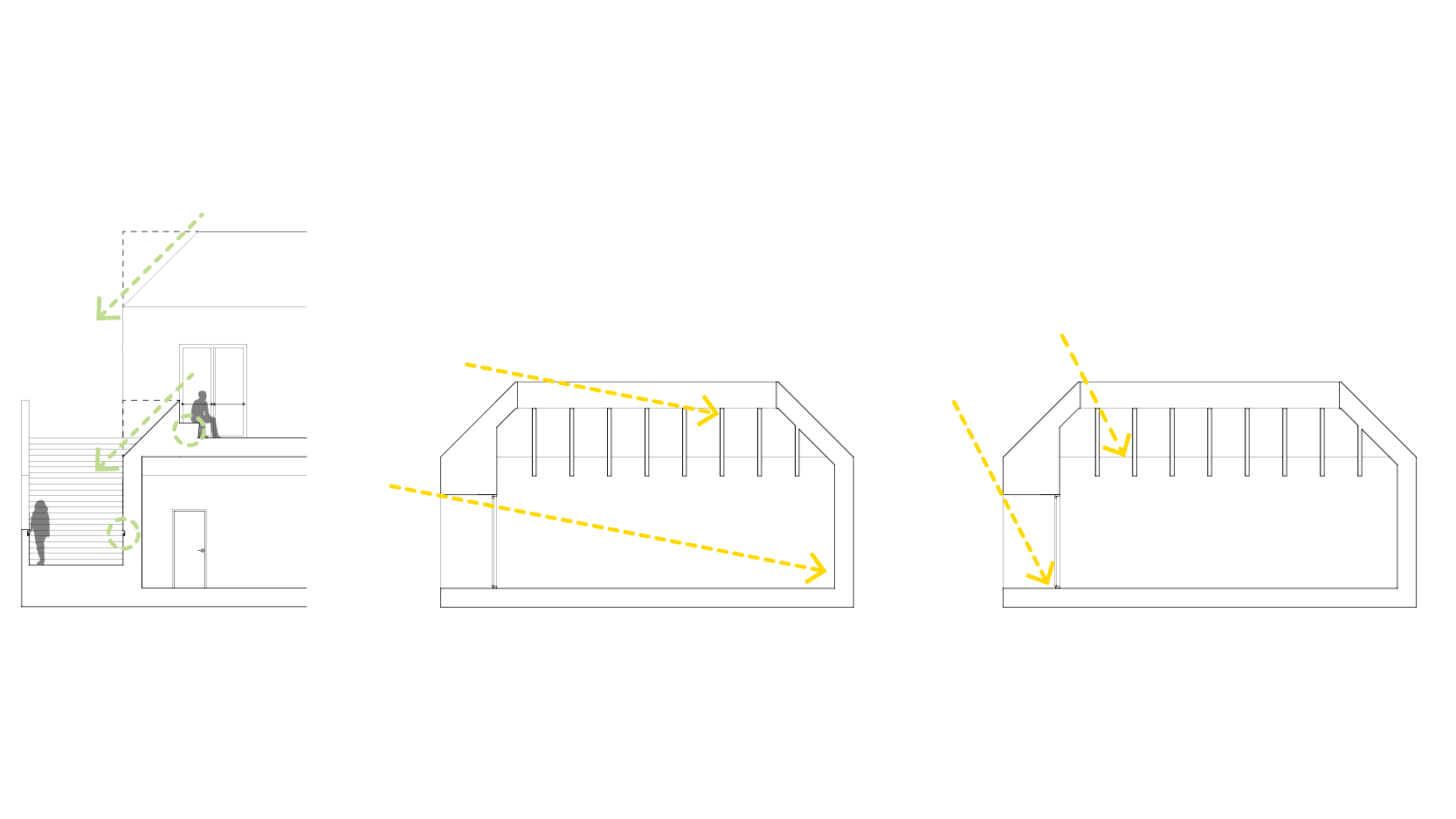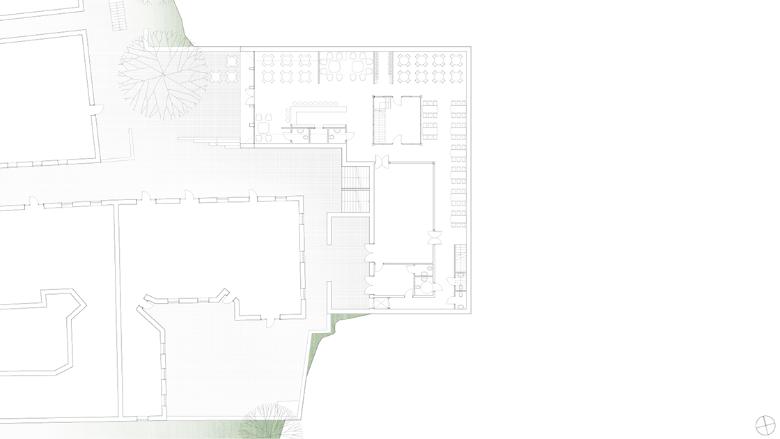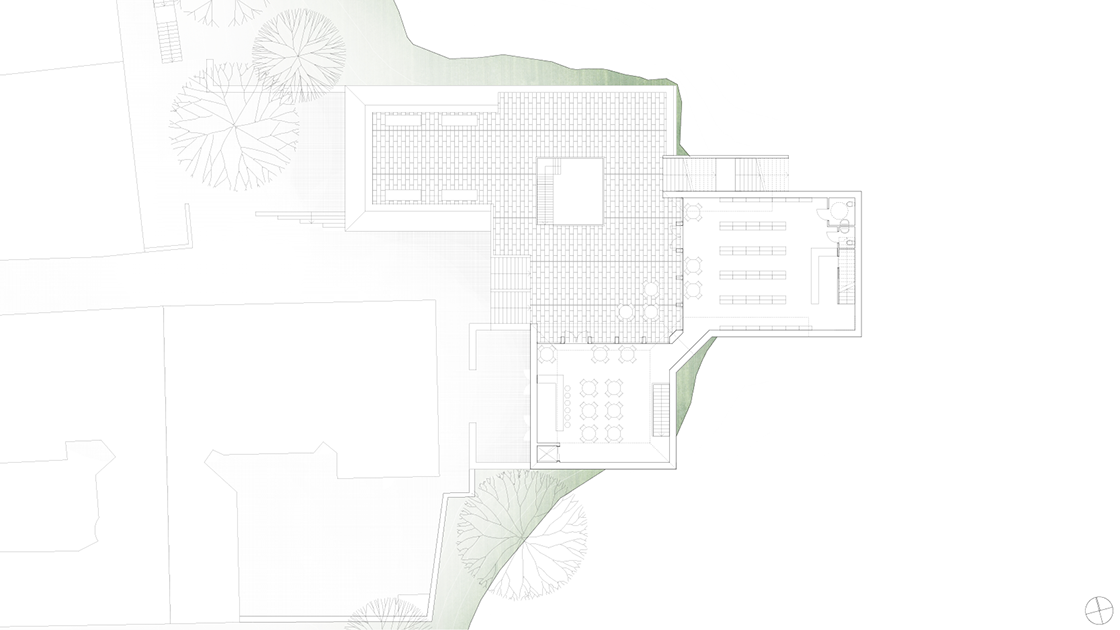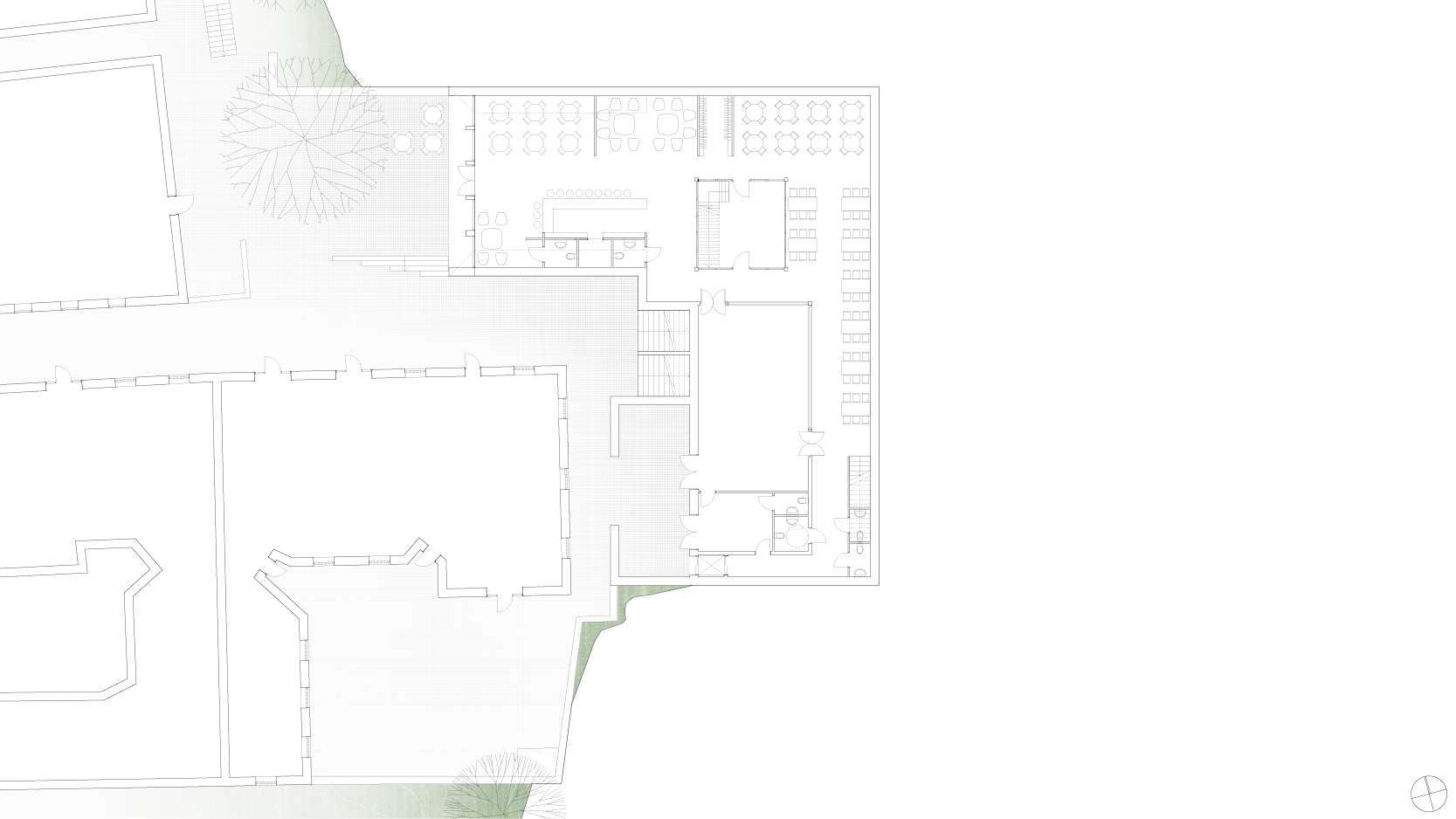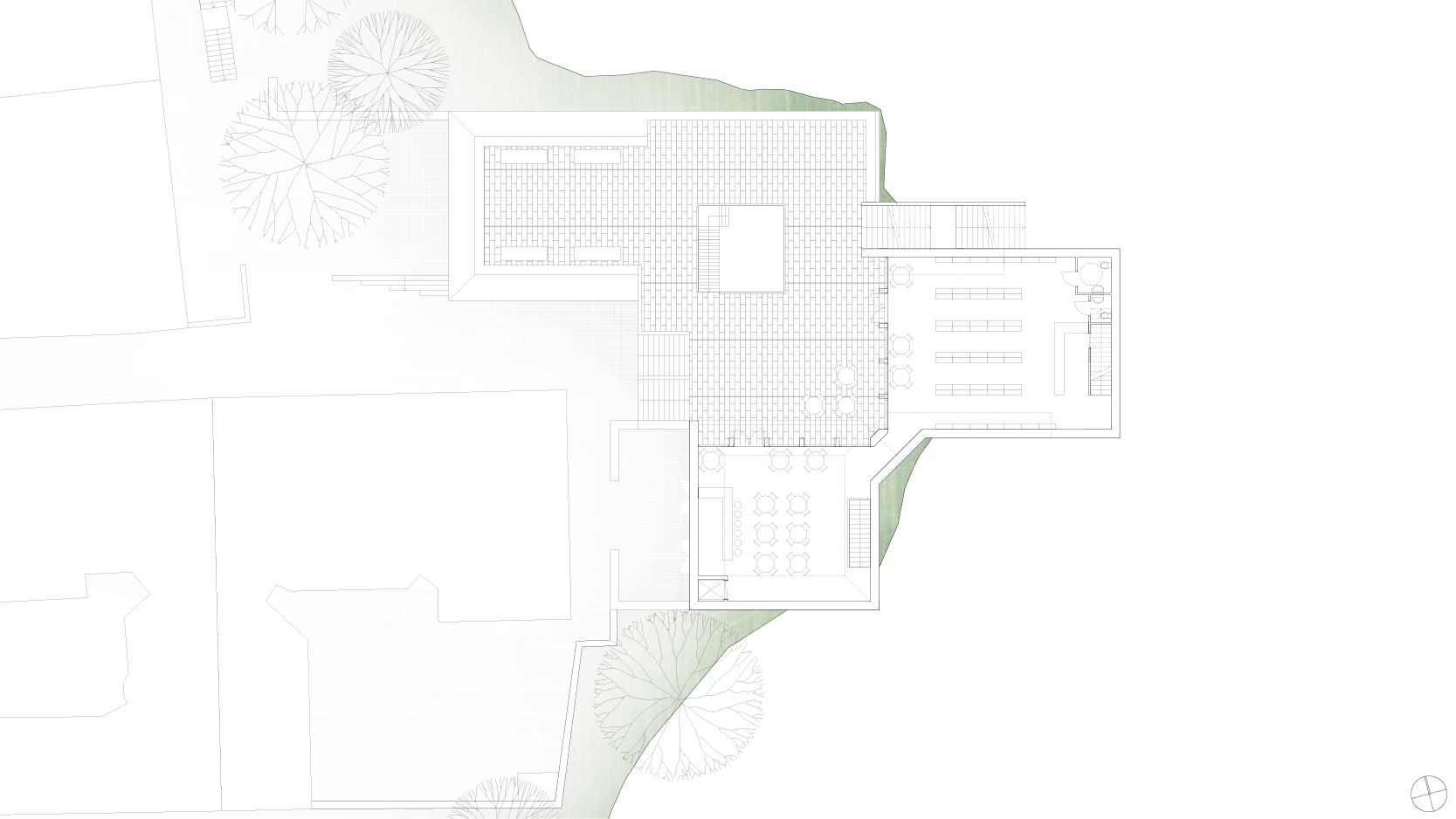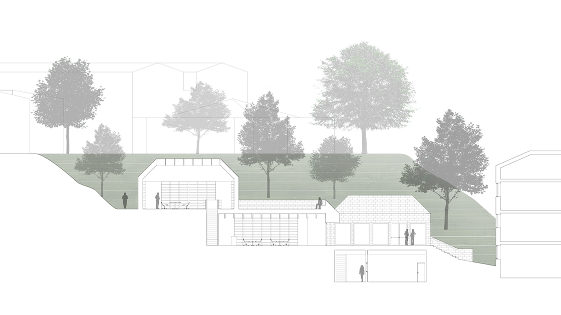 Med dessa förutsättningar och en karaktär av hus i park vill jag göra en historisk och platsspecifik återkopplig. Både i upplevelsen av rummen mellan byggnaderna, rörelsen från Himmelriksgränd upp på landborgen och i det lokala materialvalet som är lerskiffer.