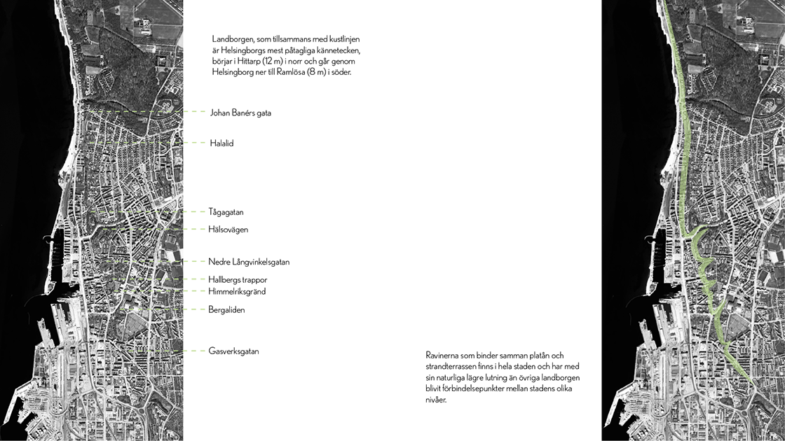 Tillsammans med detta föreslås parkeringsplatsen uppe på landborgens platå att bebyggas med bostäder i två våningar samt lokaler som vätter ut mot landborgen med en fantastisk utsikt över Öresund. Med dessa tillägg kommer stadslivet med bostäder att växa upp på landborgen och knyta samman Helsingborgs stad.