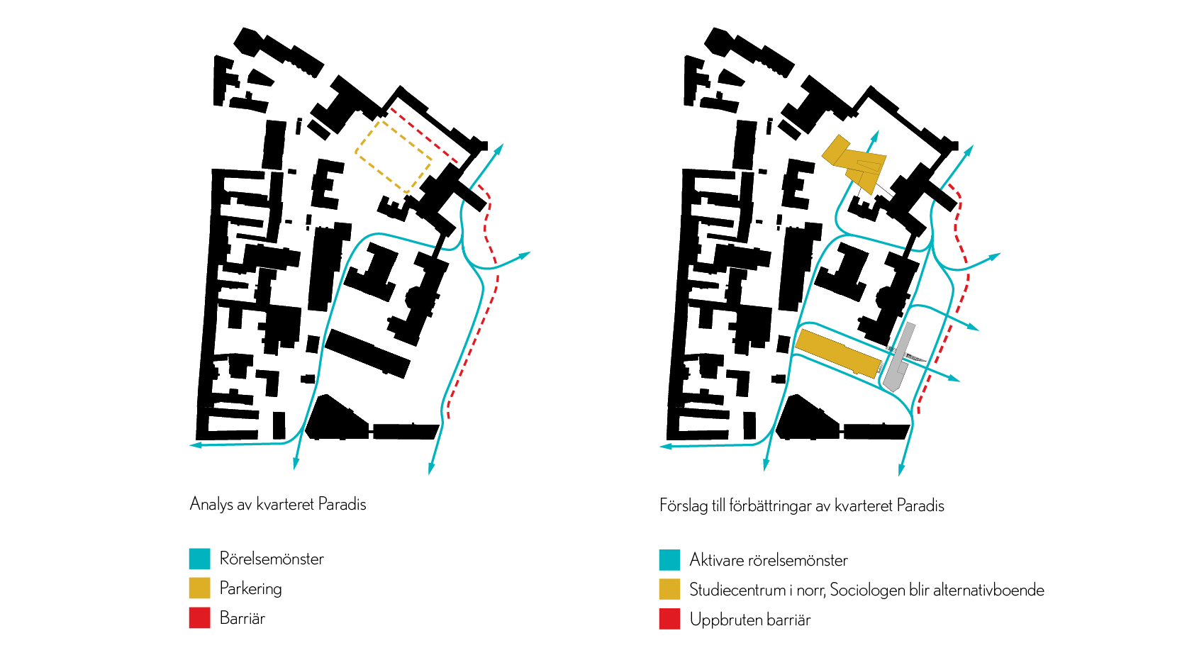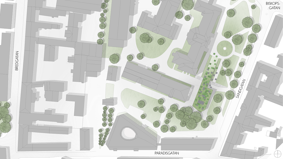 Kvarteret Paradis är en del av Lunds kunskapsstråk, som börjar i Lundagård och sträcker sig norr ut mot LTH. Den väst-östliga riktningen är påtaglig i den sydöstra delen av kvarteret, bland annat genom den befintliga bebyggelsens orientering. Den nord-sydliga riktningen är starkt förankrad i Lund och det är något som kommer framhävas med tillägget. De funktioner som eftersträvats i kvarteret är: